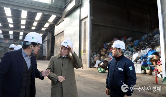 한국시사경제 사회팀 | 올해부터 수도권 생활폐기물에 대한 ‘직매립’이 금지된 가운데 김성중 경기도 행정1부지사가 13일 평택시의 한 민간처리시설(소각, 재활용)을 찾아 폐기물 처리 현황을 점검했다.