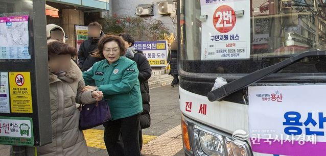 한국시사경제 노승선 기자 | 박희영 서울 용산구청장이 서울시내버스 파업으로 출퇴근길 교통 혼잡이 우려되는 가운데, 13일 오전 무료 셔틀버스 운행 현장을 직접 찾아 출근길 주민 불편 사항을 점검했다.