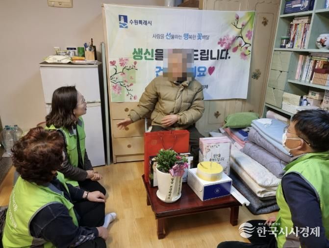 한국시사경제 사회팀 | 수원시 팔달구 화서2동 지역사회보장협의체는 지난 13일, 관내 저소득 홀몸 어르신 가정을 직접 방문해 생신을 축하 드리고 안부를 확인하는 ‘사랑을 선물하는 행복한 꽃배달(선행꽃) 사업을 추진했다.
