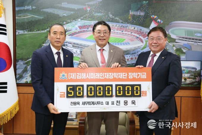 한국시사경제 노승선 기자 | 김해시미래인재장학재단은 15일 천용욱 세무회계사무소에서 올해부터 5년간 5,000만원을 기탁하기로 했다고 밝혔다.