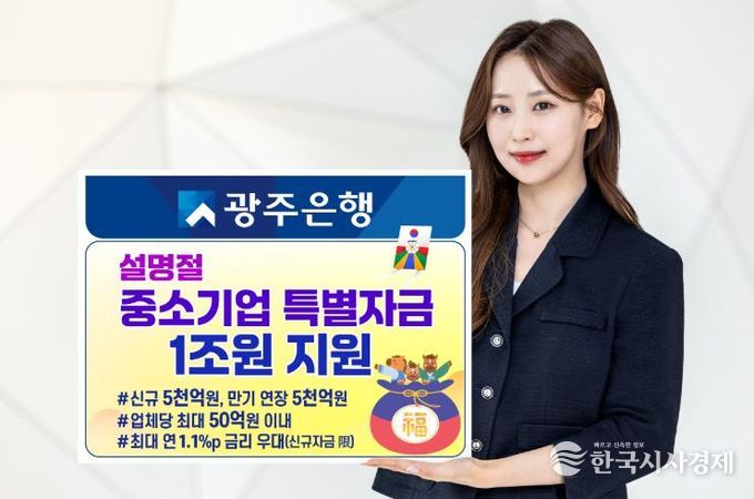 한국시사경제 광주취재본부 | 광주은행은 설 명절을 앞두고 자금 운용에 어려움을 겪는 지역 중소기업 및 소상공인을 위해, 1월 15일부터 2월 27일까지 총 1조 원 규모의 ‘2026년 설 명절 중소기업 특별자금’을 지원한다고 밝혔다.