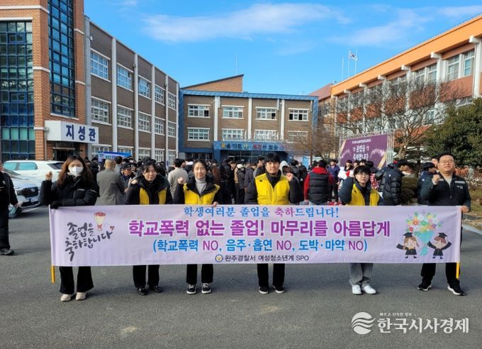 행사는 졸업식 당일 학교 정문과 진입로 등 청소년 밀집지역을 중심으로 진행되며, 청소년 폭력 및 비행 예방 캠페인과 함께 완주경찰서와 합동 순찰을 병행해 현장 중심의 예방 활동을 강화했다.
