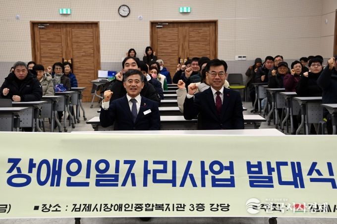 한국시사경제 김숙영 기자 | 김제시는 김제시장애인종합복지관(관장 박승택)이 16일 복지관 3층 강당에서 장애인일자리사업 참여자 75명 등이 참석한 가운데 2026년 장애인일자리사업 발대식 및 참여자 교육을 개최했다고 밝혔다.