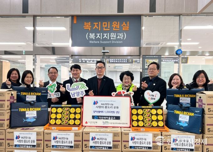 한국시사경제 경기북부취재본부 | 남양주시는 15일 다산새마을금고가 다가오는 설을 맞아 관내 취약계층을 위해 1,000만 원 상당의 참치 선물세트 330개를 기부했다고 밝혔다.
