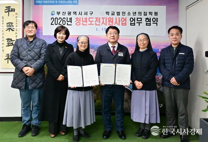 한국시사경제 김숙영 기자 | 부산 서구와 학교법인 소년의집학원은 지난 15일 2026년 청년 도전 지원 사업의 성공적인 추진을 위한 업무 협약을 체결했다고 밝혔다.