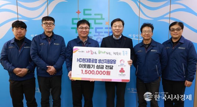 한국시사경제 울산취재본부 | HD현대중공업 생산지원담당(부서장 박필용 수석)은 1월 16일 오전 10시 동구청을 방문해 이웃돕기 성금 150만 원을 전달했다.