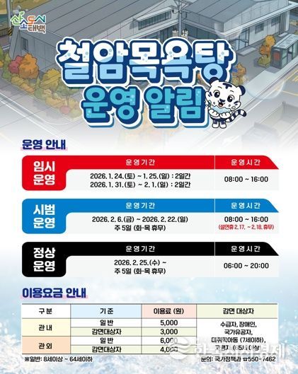 태백시 관계자는 “임시·시범운영 기간 동안 실제 이용 과정에서 나타나는 불편 사항과 개선 의견을 충분히 반영한 후 정상운영에 들어갈 계획”이라며, “철암목욕탕이 지역 주민들의 건강 증진과 생활 편의를 높이는 대표적인 공공복지시설로 자리매김할 수 있도록 최선을 다하겠다”고 말했다.