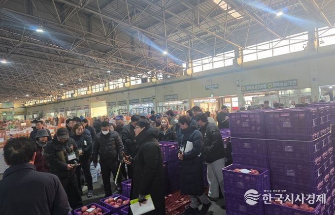 이날 경매 현장에는 이현주 농업기술센터소장을 비롯해 대경사과원예농협 포항APC장장, 도매시장 법인대표, 도매시장 및 관계자 등이 참석했다.