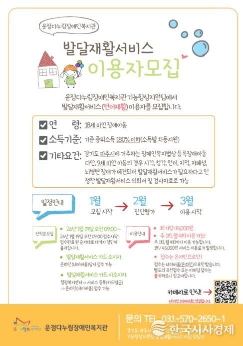 한국시사경제 경기북부취재본부 | 파주시는 운정다누림장애인복지관을 통해 발달지연 및 장애로 언어재활치료가 필요한 아동을 위한 ‘발달재활서비스(언어재활)’를 지원한다고 밝혔다.