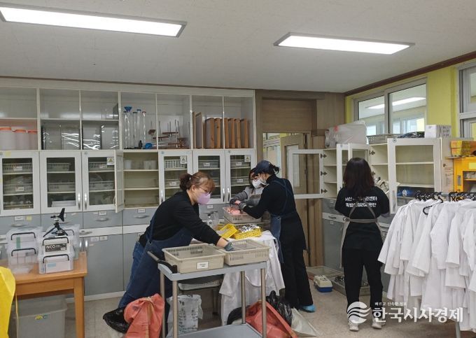 한국시사경제 충남취재본부 | 서산교육지원청 학교지원센터는 19일 언암초등학교를 대상으로 과학실 정리지원 사업을 실시했다.