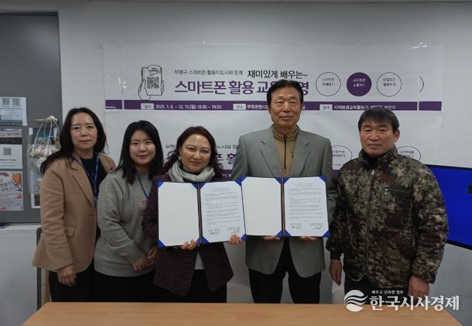한국시사경제 사회팀 | 부평구 산곡노인문화센터는 지난 16일 부평종합시장 고객지원센터에서 부평종합시장상인회와 ‘1:1 맞춤형 온라인 길라잡이’ 사업추진을 위한 업무협약식을 체결했다.