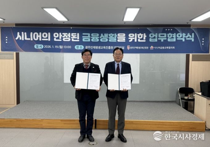 한국시사경제 광주취재본부 | (재)광주인재평생교육진흥원(원장 송형길)은 (사)시니어금융교육협의회(사무총장 오영환)와 19일 시니어의 안정된 금융생활과 금융소비자 보호를 위한 업무협약을 체결했다.