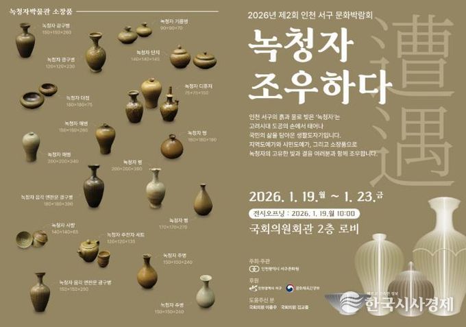 ‘제2회 서구문화박람회- 녹청자 조우하다’ 전시는 2026년 1월 19일 10시 개막을 시작으로 1월 23일 오후 2시까지 진행되며 무료 관람할 수 있다.
