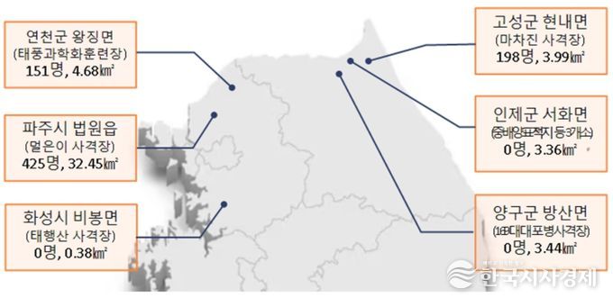 지정·고시 예정 지역은 파주시 멀은이 사격장, 고성군 마차진 사격장, 연천군 태풍과학화 훈련장 등으로 총 48.3 ㎢의 소음대책지역에 약 770명의 주민이 보상을 받을 예정이다.