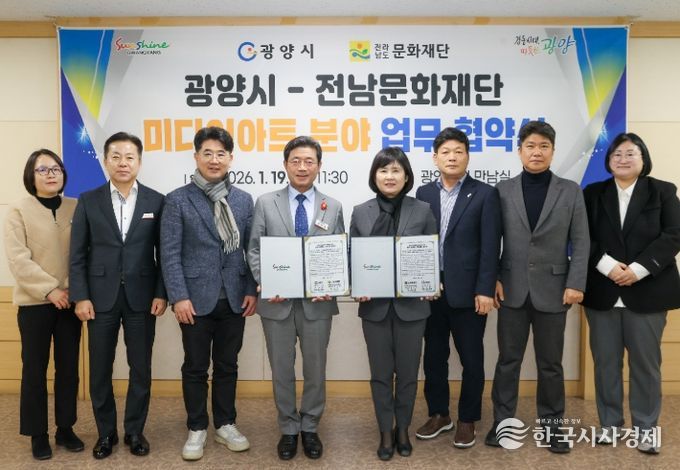 한국시사경제 권충언 기자 | 광양시는 지난 1월 19일 광양시청 만남실에서 전라남도문화재단과 미디어아트 기반 문화예술 협력을 위한 업무협약을 체결했다고 밝혔다.