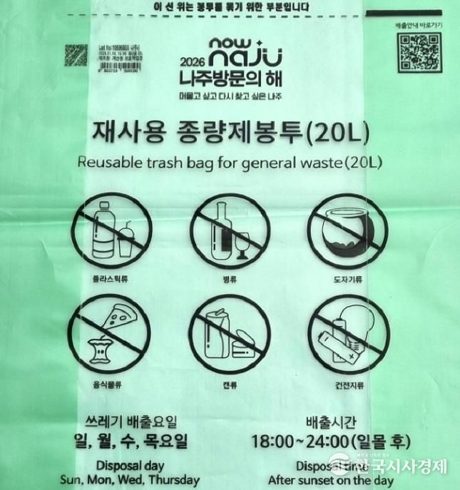 특히 종량제봉투는 사용 빈도가 높은 생활용품인 만큼 반복적인 노출을 통해 ‘2026 나주방문의 해’를 시민들에게 자연스럽게 각인시키는 홍보 효과가 있을 것으로 전망된다.