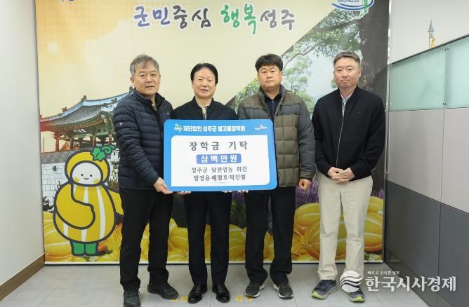 한국시사경제 권충언 기자 | 지난 19일 성주군 쌀전업농회 회원 방경용 · 배점호 · 탁진열씨가 지역인재를 위한 장학금 각 1백만원씩 총3백만원을 (재)성주군별고을장학회에 기탁했다.