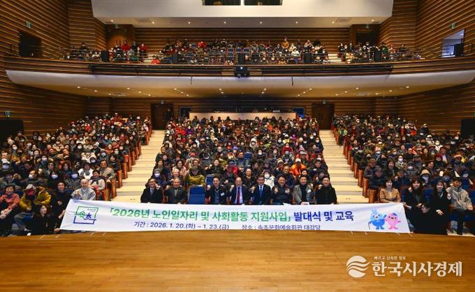 한국시사경제 권충언 기자 | 속초시가 1월 20일부터 23일까지 4일간 속초문화예술회관에서 ‘2026년 노인 일자리 및 사회활동 지원사업 발대식’을 개최하고 노인 일자리 사업을 본격 추진한다.