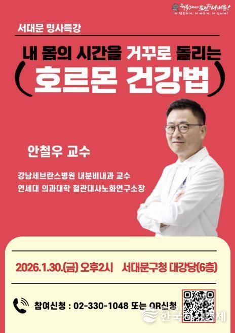 한국시사경제 노승선 기자 | 서대문구가 연세대 의대 강남세브란스병원 내분비내과 안철우 교수를 초청해 이달 30일 오후 2시부터 90분간 구청 6층 대강당에서 ‘1월 서대문 명사 특강’을 개최한다.