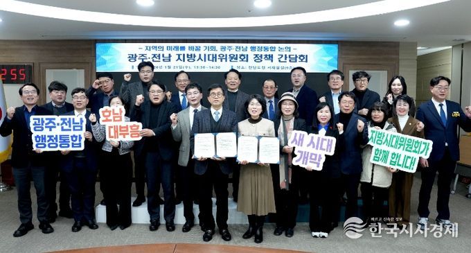 광주광역시지방시대위원회와 전라남도지방시대위원회는 21일 오후 전남도청 서재필실에서 공동간담회를 열고, 행정통합 추진과정에서 위원회의 역할과 협력 방안을 논의했다.