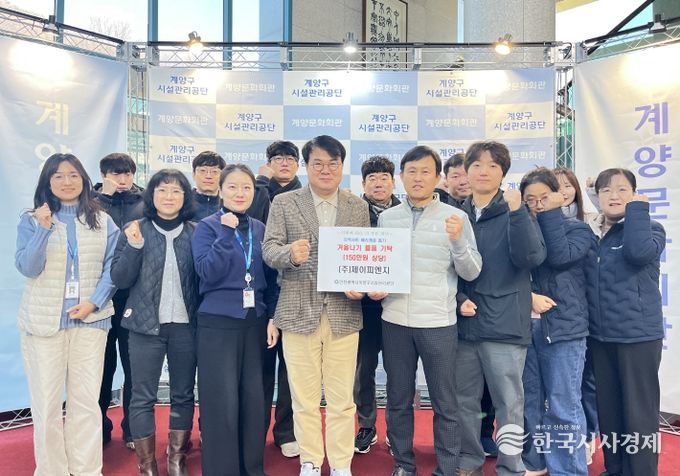 한국시사경제 사회팀 | 인천광역시계양구시설관리공단(이사장 박성민)은 21일에 공단 협력기관인 ㈜제이피엔지로부터 기탁 받은 겨울나기 지원 물품을 지역 노인복지기관에 전달하며 지역사회 나눔을 실천했다고 밝혔다.