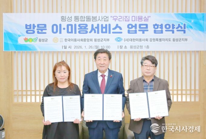 군은 26일, 한국이용사회중앙회 강원도지회 횡성군지부 및 대한미용사회 횡성군지부(지부장 정덕희)와 ‘방문 이·미용 서비스’ 제공을 위한 업무협약을 체결했다.