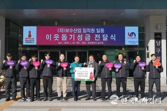 한국시사경제 부산취재본부 | (자)보수산업은 지난 1월 22일, 부산 남구청을 방문해 직원들이 십시일반 정성을 모아 마련한 성금 500만 원을 기부했다고 밝혔다.