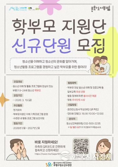 한국시사경제 사회팀 | 부평구 청소년수련관은 오는 3월 13일까지 2026년 제7기 학부모지원단 ‘데이트’의 신규 단원을 모집한다고 밝혔다.
