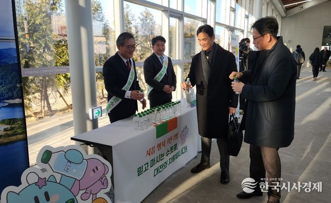 한국시사경제 대전취재본부 | 대전시 상수도사업본부는 유성복합터미널 개장을 맞아 28일부터 2월 12일까지 16일간 터미널 내 ‘관광안내소(꿈돌이와 대전여행 2)’ 앞에서 대전 수돗물 ‘이츠수’ 시음회를 진행한다.