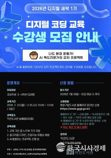 한국시사경제 사회팀 | 인천 계양구 작전도서관은 겨울방학을 맞아 디지털 코딩 교육 프로그램 '디지털 새싹 1기'를 운영한다고 밝혔다.