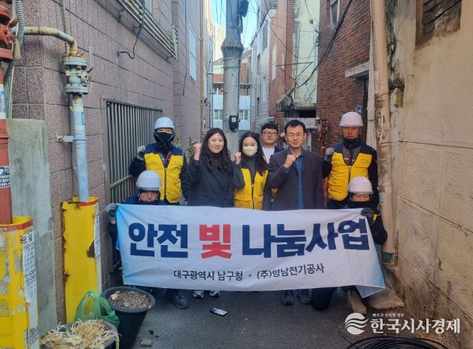 한국시사경제 문화팀 | 대구 남구는 ㈜영남전기공사(대표이사 김영주)와 지난해 5월 협약을 맺고, 전기안전이 취약한 저소득층 가구를 대상으로 100만원 상당의 전기보수공사를 지원하는 ‘안전 빛 나눔사업’을 꾸준히 이어가고 있다.