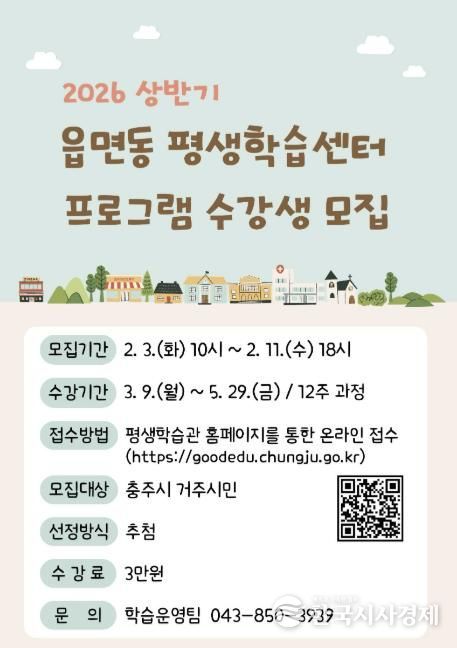 한국시사경제 충북취재본부 | 충주시 평생학습관은 시민 누구나 거주지 인근에서 배움의 기회를 누릴 수 있도록 2026년 상반기 읍면동 평생학습센터 프로그램 수강생을 모집한다고 30일 밝혔다.