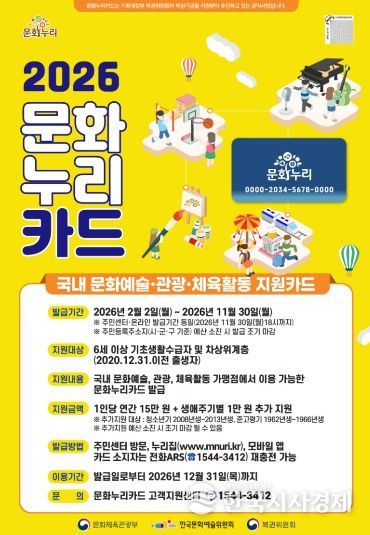 시 관계자는 “지원금 인상과 생애주기별 추가 지원으로 더 많은 시민이 문화복지 혜택을 체감할 수 있을 것”이라며 “발급률과 이용률을 높여 취약계층의 문화 접근성을 개선하고, 정보 부족으로 신청에서 배제되는 일이 없도록 촘촘한 홍보를 이어가겠다”라고 말했다.