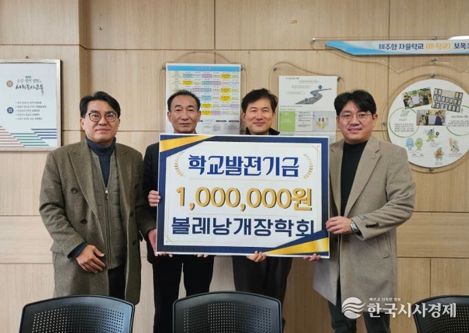 한국시사경제 노승선 기자 | 제주도교육청은 볼레낭개장학회가 1월 29일 모교인 보목초등학교를 방문하여 학교발전기금 100만원을 기탁하며 지역 인재 양성을 위한 따뜻한 나눔을 이어갔다고 밝혔다.