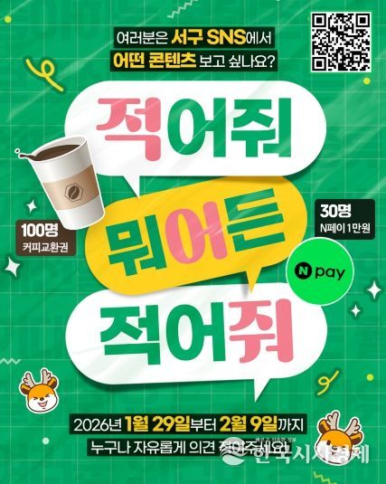 한국시사경제 사회팀 | 인천 서구는 주민과 더욱 효과적으로 소통하고 주민 눈높이에 맞는 콘텐츠를 제작하기 위해 ‘2026년 서구 유튜브·소셜미디어 콘텐츠 선호도 조사’를 오는 1월 29일부터 2월 9일까지 실시한다.