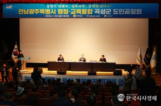 한국시사경제 권충언 기자 | 전남 곡성군은 지난 1월 30일 전남광주특별시 행정·교육통합에 대한 의견을 수렴하기 위해 곡성레저문화센터 동악아트홀에서 도민공청회를 개최했다고 2일 전했다.