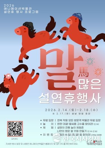 한국시사경제 이정이 기자 | 춘천 애니메이션박물관(토이로봇관)은 2026년 병오년(말의 해)을 맞아 2월 14일부터 18일까지 설맞이 문화행사 '말(馬) 많은 설연휴'를 운영한다. 이번 행사는 놀이를 매개로 관람객이 함께 참여하며, 자연스럽게 소통할 수 있도록 구성된 참여형 문화행사다.