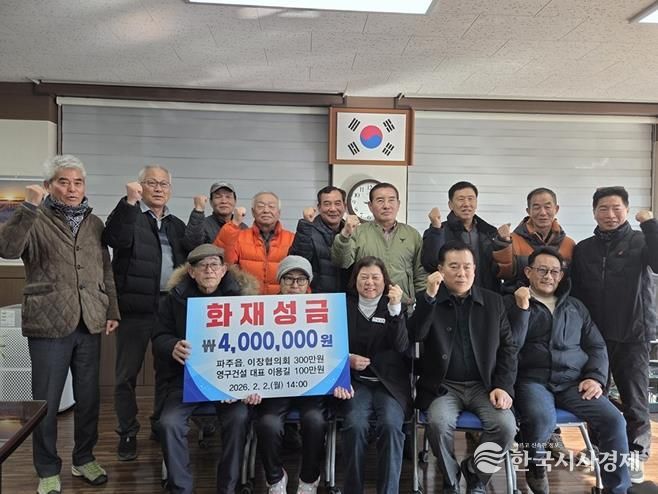 파주읍 이장협의회는 성금 전달에 앞서, 화재 직후 장비를 동원해 전소된 주택내부 시설과 폐기물을 정리하는 등 신속한 복구 지원에도 나섰다.