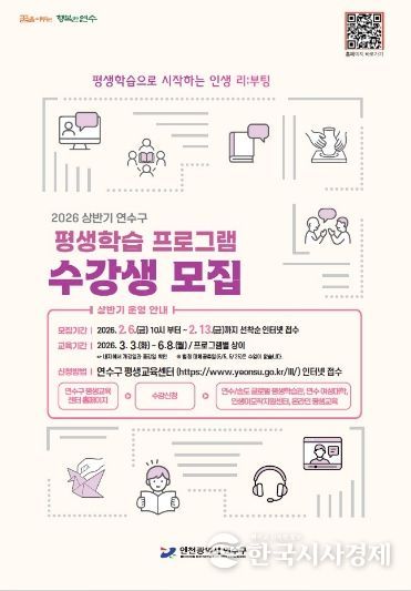 한국시사경제 윤광희 기자 | 연수구가 4차 산업혁명과 디지털 전환 시대를 선도할 구민 역량 강화를 위해 ‘2026년 상반기 평생학습 프로그램’ 수강생을 모집한다.