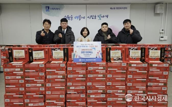 한국시사경제 사회팀 | 지난 3일 수원성결교회는 설 명절을 맞아 수원시 팔달구 매교동에 관내 복지 사각지대에 있는 어려운 이웃들이 따뜻한 명절을 보낼 수 있도록 라면(20개입) 100박스를 후원했다.