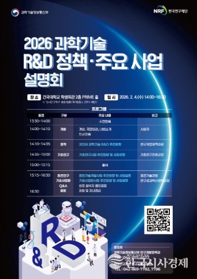 한국시사경제 디지털 뉴스팀 | 과학기술정보통신부는 2월 4일 오후 2시 건국대학교 학생회관 2층 PRIME홀에서 ‘2026 과학 기술 연구개발(R&D) 정책·주요 사업 설명회’를 개최했다고 밝혔다.