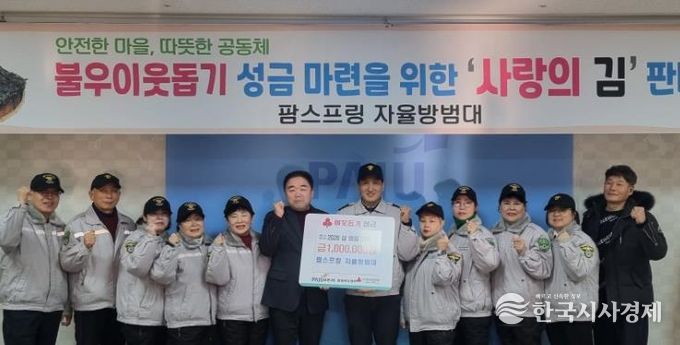 팜스프링 자율방범대는 지난 1월 30일 금촌3동 행정복지센터를 방문해 현금 100만 원을 전달했다. 이번 기탁금은 자율방범대원들이 직접 발로 뛰며 진행한 ‘사랑의 김 판매’수익금으로 마련되어 그 의미를 더했다.