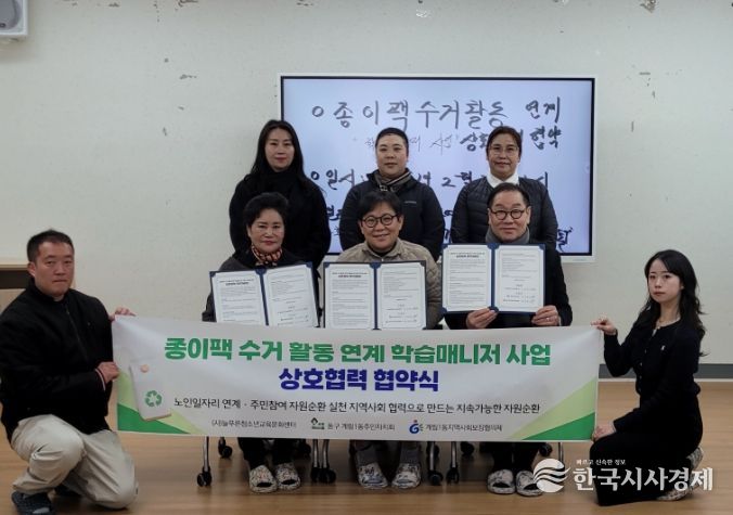이번 협약은 노인 일자리 및 사회활동지원사업으로 운영 중인 ‘학습매니저’ 사업을 종이팩 수거 활동과 연계해 추진함으로써 주민의 자원순환 인식을 높이고 안정적인 종이팩 수거 체계를 구축하는 것을 목표로 하고 있다.