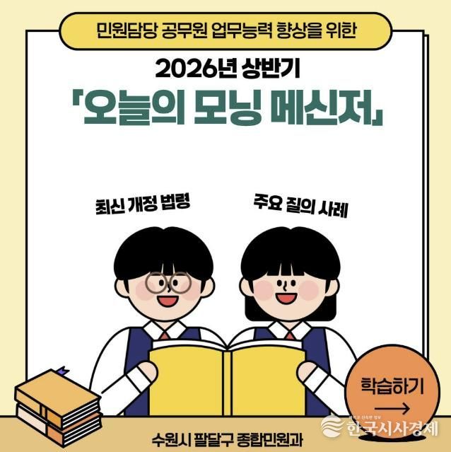 한국시사경제 사회팀 | 수원시 팔달구는 민원 담당 공무원을 대상으로 비대면 직무 역량 강화 교육인 ‘오늘의 모닝 메신저’를 운영한다고 밝혔다.