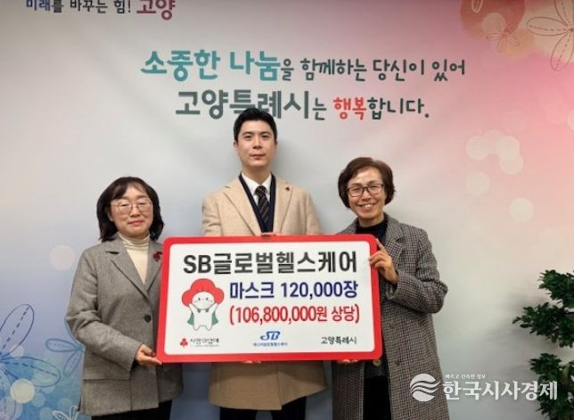 SB글로벌헬스케어는 총 1억 6백 8십만 원 상당의 마스크 12만장을 기부했으며, 전달받은 마스크는 사회복지공동모금회를 통해 고양시 관내 사회복지기관 28개소에 지난 1월 26일 배분됐다.