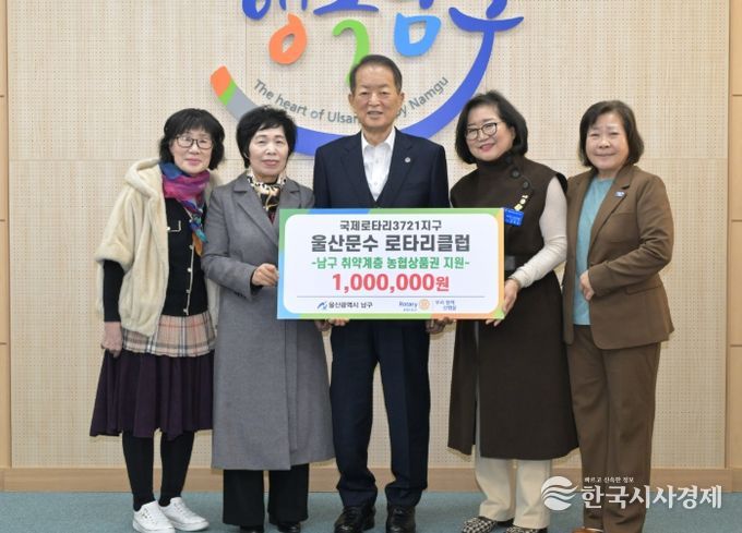 한국시사경제 울산취재본부 | 울산 남구의 나눔 문화를 선도하는 울산문수 로타리클럽(회장 권대순)은 5일 남구청을 방문해 관내 저소득 취약계층을 위한 100만 원 상당의 농협하나로상품권을 전달했다.