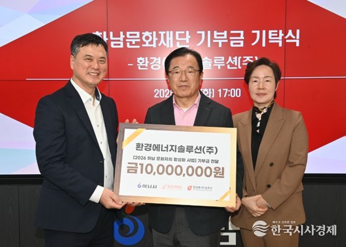 한국시사경제 윤광희 기자 | (재)하남문화재단은 2월 4일, 하남시청에서 환경에너지솔루션㈜으로부터 문화자치 활성화를 위한 기부금 1천만 원을 전달받았다고 밝혔다. 이날 기부식에는 이현재 하남시장을 비롯해 기업 및 재단 관계자들이 참석해 지역 상생과 ESG 실천의 의미를 공유했다.