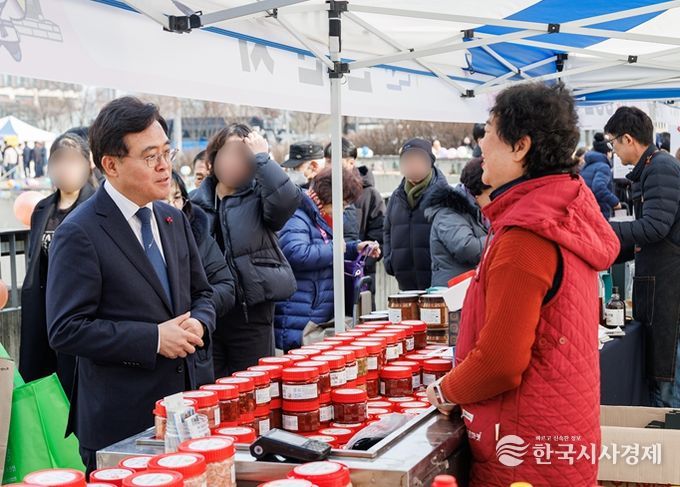 한국시사경제 기동취재팀 | 진교훈 서울 강서구청장이 5일 마곡광장에서 열린 ‘설맞이 농특산물 직거래장터’를 찾았다.