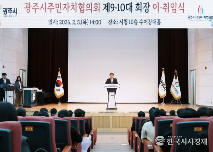 한국시사경제 기동취재팀 | 광주시는 5일 시청 수어장대홀에서 ‘제9·10대 광주시 주민자치협의회장 이·취임식’을 개최했다.