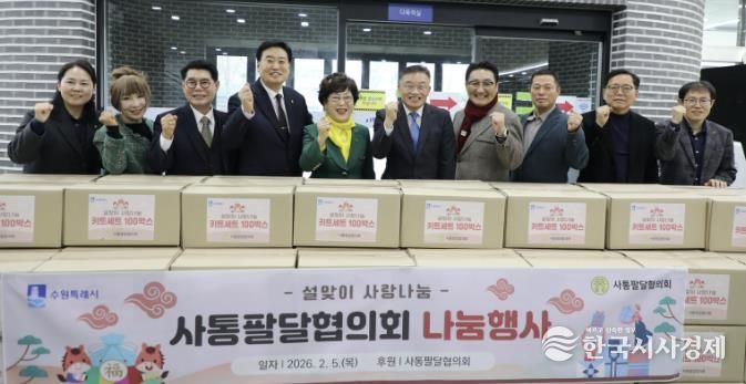 한국시사경제 사회팀 | 사통팔달협의회는 지난 5일, 민족 대명절인 설을 앞두고 관내 어려운 이웃을 위한 ‘설맞이 사랑나눔 키트’ 100박스를 수원시 팔달구에 전달했다고 밝혔다.